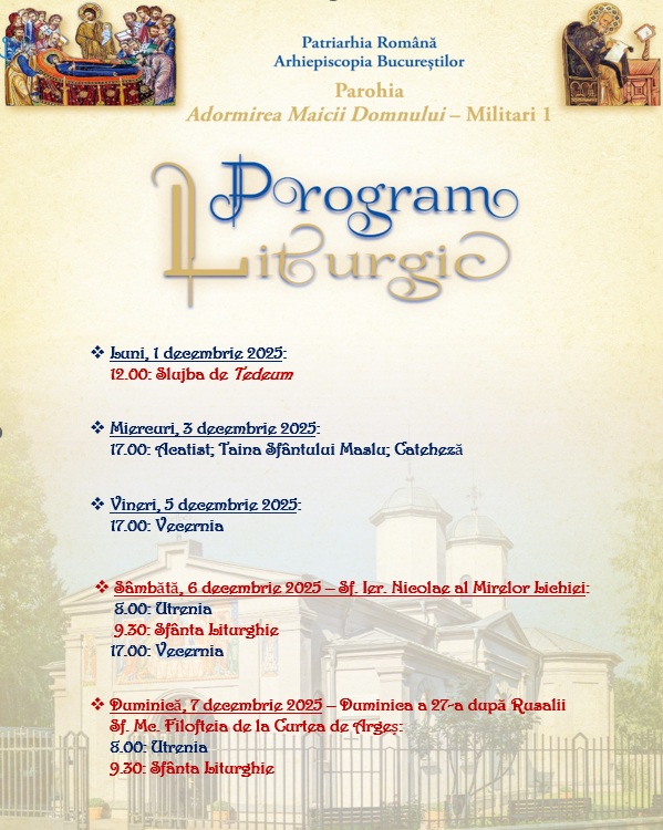 Program liturgic: Săptămâna 1-7 decembrie 2025