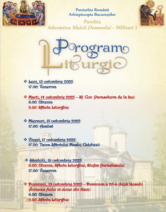 Program liturgic: Săptămâna 13-19 octombrie 2025